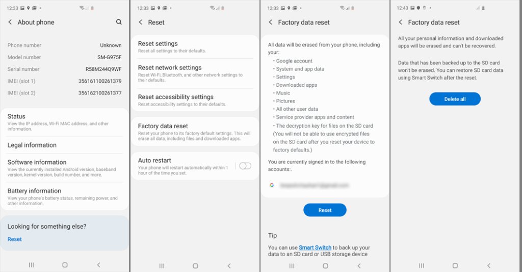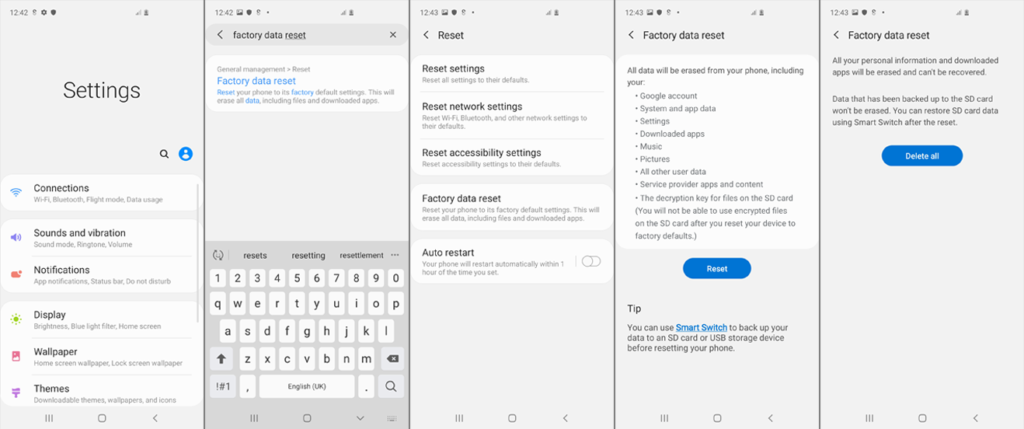 You may be prompted to enter your PIN and Account details, please enter to complete the Factory Data Reset.