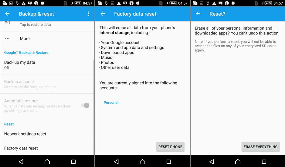 You may be prompted to enter your PIN and Account details, please enter to complete the Factory Data Reset